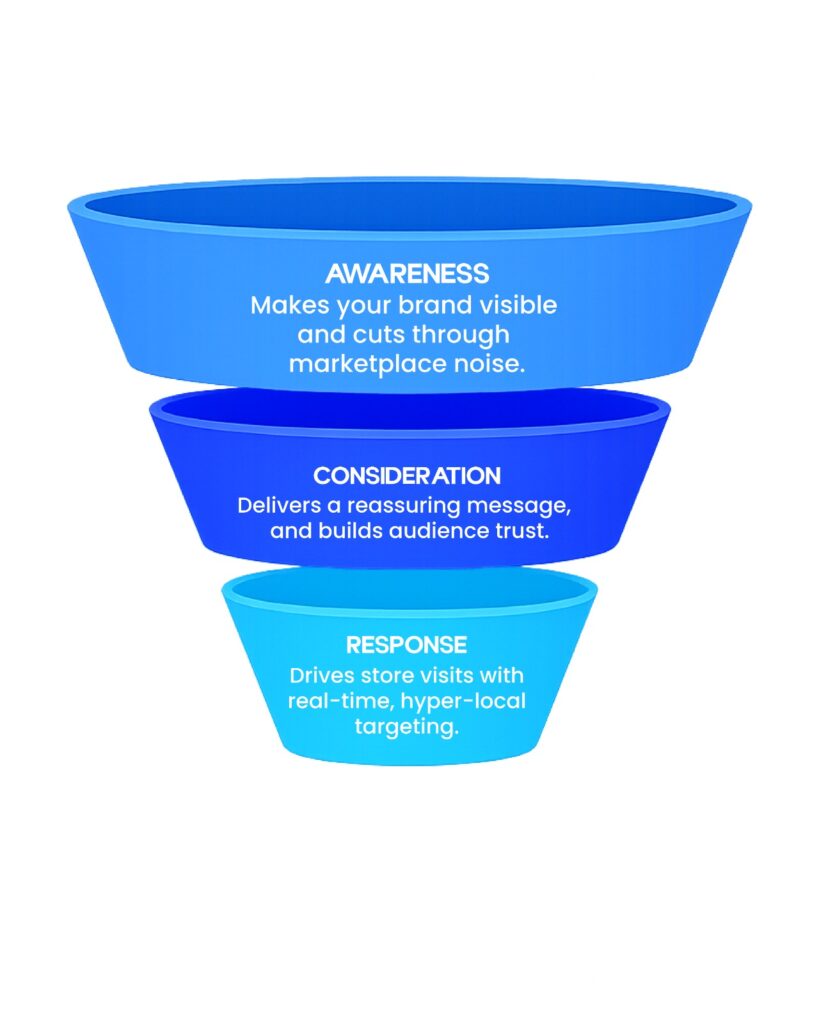 - في مرحلة التفكير (Consideration): تعزز الثقة والمصداقية في المساحات العامة المشتركة، مما يبقي العلامة التجارية في صدارة الأذهان بينما يوازن الجمهور خياراتهم.